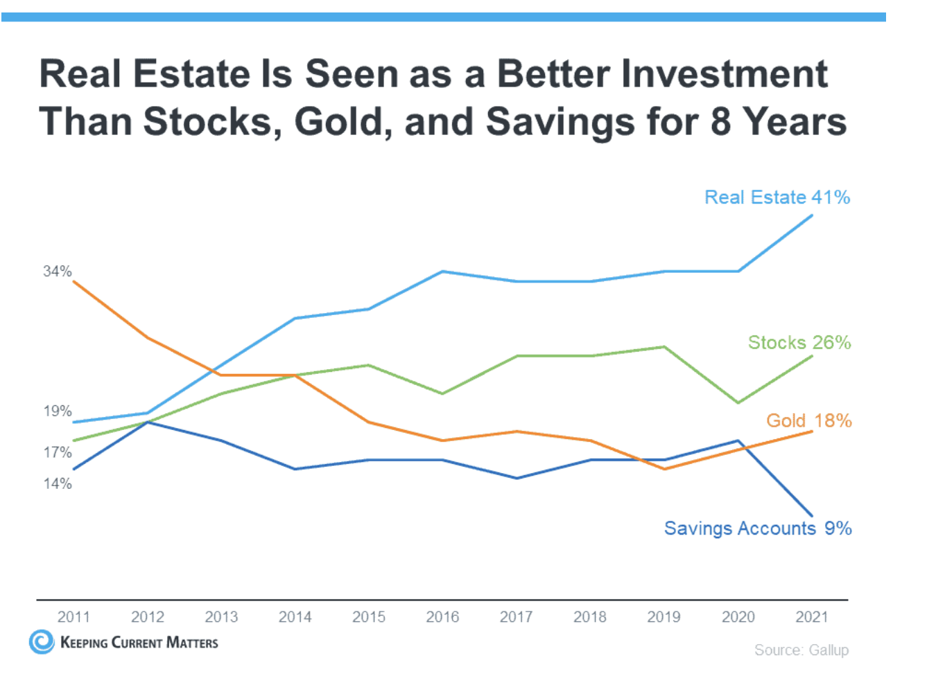 If you’re not sure where to invest, Real Estate is seen as a better investment than stocks, gold and savings for 8 year per an annual Gallup poll.